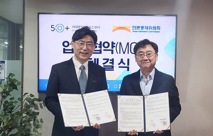 위원회와 서대문50플러스센터는 5월 22일 중장년 세대의 미디어 이해력 제고와 언론피해 구제 교육 협력을 위한 업무협약을 체결하고, 향후 공동으로 교육사업을 활발히 추진하기로 합의했습니다. 이번 협약을 통해 양 기관은 언론피해 구제 및 예방, 미디어 관련 교육에 대한 강사 파견 및 교육 기회 제공, 미디어 교육 관련 정보의 상호 교류와 공동 홍보 등 교육 협력에 필요한 사항에 대해 지속적으로 협력해 나가기로 했습니다.