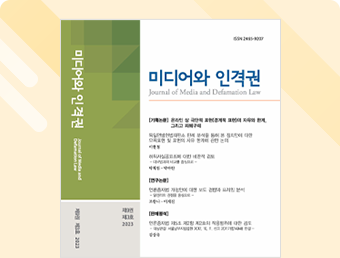 이번 학술지에서는 ‘온라인 상 극단적 표현의 자유와 한계, 그리고 피해구제’를 대주제로 한 기획논문 2편이 수록됐으며, 알권리의 관점을 중심으로 언론중재법 개정안에 대한 보도 경향과 프레임을 분석한 연구논문 1편과 함께 언론중재법 제5조제2항제2호의 적용범위를 검토한 판례평석도 실렸습니다.